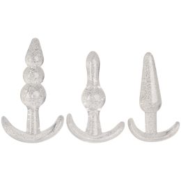 Hvis du vil begi deg inn i anal-dalen, som ligger rett mellom de to frekke åsene, kan baseks glitter butt plugs være ditt veivisende, glitrende lys. De tre pluggene lar deg eksperimentere mellom pæreformede perler, en slank variant eller en mer tradisjonell kjegleform.