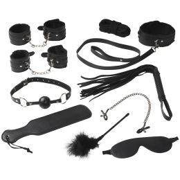 INNHOLD: Flogger, håndjern, fotjern, gag, blindfold, paddle, bånd, bondage tau, brystklemmer, kilefjær.