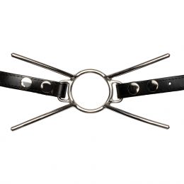 På ringen er det montert fire metallstaver som setter seg tett inntil ansiktet når du bruker den. Disse stengene sikrer at O-ringen ikke forsvinder inn i munnen.