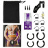INNHOLD: Penisbur, 5 ringer i forskjellige størrelser (+ 1 toppring med 4 avstandsstykker), 3 låsepinner i forskjellige størrelser, metallhengelås med 2 nøkler, 2 individuelt nummererte plastlåser, 5 ml glidemiddel, oppbevaringspose.