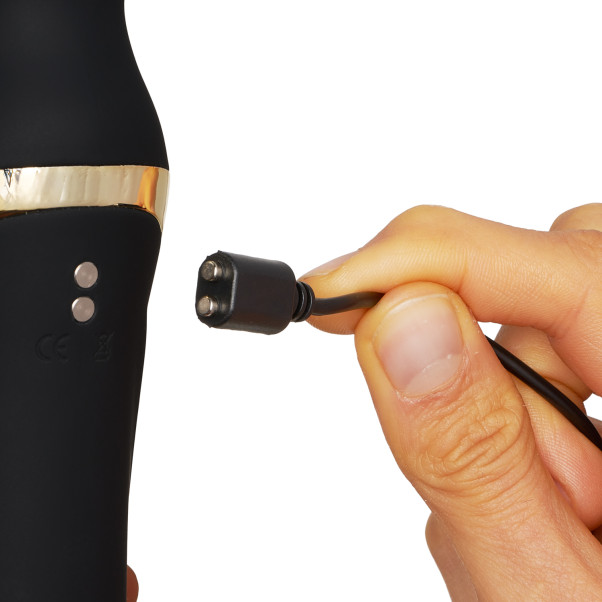 Pirr og tilfredsstill med de to forskjellige endene. Opplev de uimotståelige vibrasjonene på de følsomme ytre områdene dine, eller bruk den roterende enden innvendig som gir deg hjertebankende nytelse. Det er som å ha to leker i én!