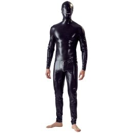 Det skinnende materialet i denne ettersittende drakten er tøyelig og tillater enhver form for bevegelser samtidig som bæreren er frarøvet synssansen. Toveis glidelåsen går fra for- til baksiden, og kan gi fri adgang til godsakene.