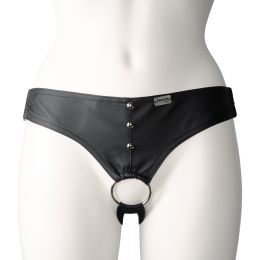 De brede, justerbare stroppene omslutter hoftene dine, mens sølvfargede metallspenner og nagler tilfører erotikk til den svarte jockstrapen i imitert skinn. Ringen foran omfavner lemmet ditt, og lar det henge eksponert og fritt til å bli beundret, mens bakenden også er blottet og innbyr til utforskning.