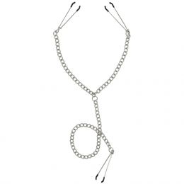Den sølvfargede kjeden som forbinder klemmene gir en deilig følelse av tyngde og ligger vakkert over den nakne kroppen.