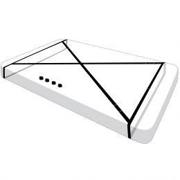 De svarte nylonstroppene passer de fleste madrasser og danner et kryss på midten, som et kinky BDSM-kors. Det er fastmontert praktiske D-ringer åtte steder på bindesettet, som gjør at mulighetene er uendelige.