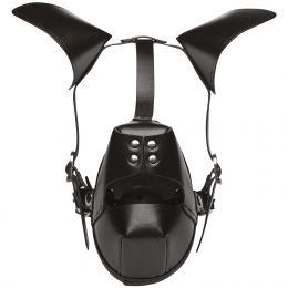 Hundemasken i kunstlær er komplett med snute og ører, og er designet i en behagelig men likevel restriktiv passform, med justerbare stropper så den passer til 'hunder' i alle størrelser.