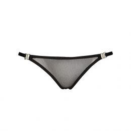 Trusen er fremstilt i en myk og lett gjennomsiktig nylonkvalitet, som sikrer deg en behagelig passform. Selve designet er pikant med wetlook-bånd som løper langs hoften og lukkes foran med små metallhekter. Helheten gir g-strengen utvilsomt et frekt og pirrende twist.