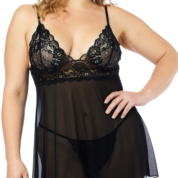 NORTIE Basil Svart Babydoll-sett Plus Size Produktbilde 6
