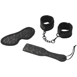 Det eksklusive settet inneholder alt dere trenger for å komme godt i gang med å utforske deres egne og hverandres kinky sider. Alle delene har en overflate som er dekorert med elegante blonder, for et erotisk uttrykk.