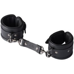Dekorer håndleddene i de mykt polstrede mansjettene og bruk spennene for å tilpasse passformen til din størrelse. Den medfølgende stroppen kobler hendene tett sammen, men kan klippes av og på, slik at du kan holde partneren din fast lengre.