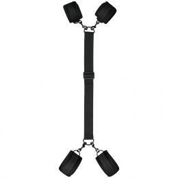 Mansjettene og stroppen er festet med svarte hummerklo-klemmer som enkelt kan flyttes til annet bondage-tilbehør for mer BDSM-utforskning.