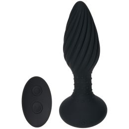 Forbered deg på å imøtekomme din besøkende ved hjelp av vannbasert glidemiddel. Nyt en jevn gli over den koniske spissen mens de virvlende rillene stimulerer analhulen din. Land trygt på den nuppete stammen der de indre perlene kretser rundt for å etterligne rimmingsopplevelser, og ta tak i fjernkontrollen for å legge til den siste summende touchen.