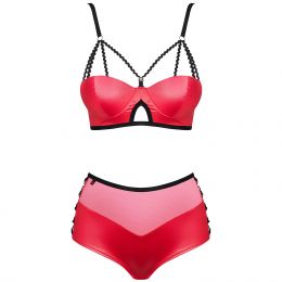 Tilfør en edgy look til dine erotiske opplevelser med dette frekke, røde Leatheria BH-settet fra Obsessive.