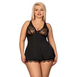 Nattkjole, lunsjkjole, morgenkjole - vi er ganske sikre på at det ikke finnes noe tidspunkt på døgnet der partneren din ikke vil se alt det sexy du har å by på i denne flørtende, svarte plus-size babydollen fra Obsessive.