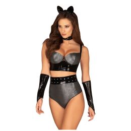 Vis frem din frekke side i dette Obsessive Silveria foxy-kostymet i svart og glitrende sølv med ører som tilfører et ekstra lekende element.