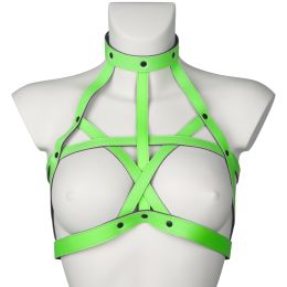 Sett scenen til en natt med erotisk lek i Glow in the Dark-brystselen fra Ouch! Du kommer til å se stilig ut i de grønne kryssende stroppene som binder deg for uhemmet nytelse.