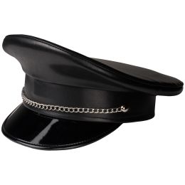 Politihatten er perfekt for rollespill eller til et utdrikingslag, hvor bæreren av hatten setter tonen og bestemmer hvilke aktiviteter som skal følge. Hatten er laget i et matt, svart materiale med en skinnende front som kontrast, dekorert med en metallenke.
