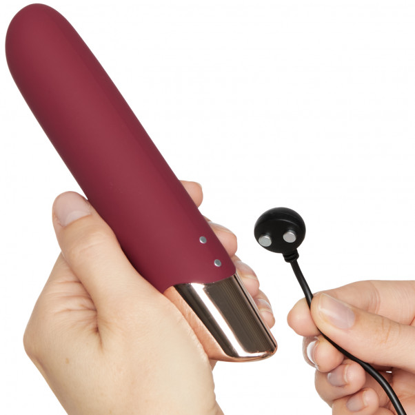 Stilig design og luksuriøs følelse, ladekabelen festes med sterke magneter og det hele føles deilig. De forskjellige vibrasjonsmodusene er som de vanligvis er på de fleste vibratorer nå for tiden, så det er litt variasjon å leke med. Det skal imidlertid sies at dette er en VELDIG kraftig vibrator – så kraftig at vi følte den varubehagelig å holde. Fingrene ser ut til å bli nummen med en gang, selv i den laveste innstillingen. Den vibrasjonen kan være bra for noen, spesielt under penetrering, menklitoris blir sår ... Les mer