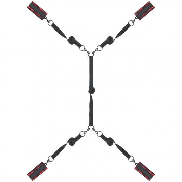 Settet er ideelt til alle par som vil eksperimentere med bindeleker. Med dette settet er det mulig å forvandle sengen til en ekte bondageseng, hvor kontroll, nytelse og dominans er i fokus.