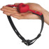 Fyll munnen til partneren din med det røde hjertet for å forhindre en hver lyd, klynking og stønn fra å unnslippe leppene deres. Bruk spennen til å justere størrelsen og gjøre gagen behagelig å ha på. Nyt å være i kontroll mens partneren din underkaster seg din vilje.