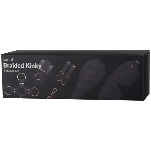 Forvandle soverommet ditt til en intim kink-klubb med dette flettede Bondage-settet fra Sinful. Med mansjetter for å binde håndledd og ankler, en hogtie, et øyenbind og en paddle har du alt du trenger for gåsehudfremkallende BDSM-moro.