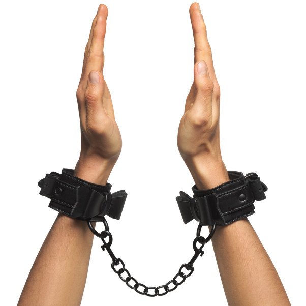 Bruk mansjettene i imitert lær rundt håndleddene på din partner og bruk fantasien med den koblede kjeden. Samle hendene foran eller bak eller bind dem til sengen. Den solide D-ringen lar deg bruke mansjettene med annet bondage-tilbehør fra samlingen din for å ta din fancy fest til neste nivå.