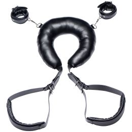 Tre på den myke, polstrede nakkestøtten og vikle selene rundt lårene for å gjøre det lettere å løfte opp anklene, for dypere og mer tilfredsstillende penetrering. De hjelpeløse hendene er bundet ved siden av hodet i mansjetter for optimal komfort og kontroll.