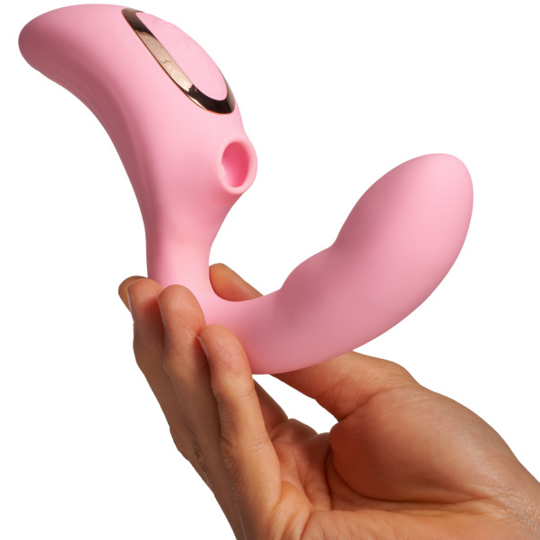 Ta på vannbasert glidemiddel og skyv den silkemyke silikonen inn. Eksperimenter med en blanding av vibrasjoner og sugemønstre for å finne det som passer deg best. Slå på varmen, og når du nærmer deg, slår du på orgasmemodus for en herlig avslutning.