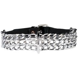 Lukingen med spenner gir en justerbar passform og valget mellom et halsbånd som sitter litt løst eller en choker-lignende look. Kombinasjonen av lær og metall utstråler erotikk, perfekt som en siste touch til kinky fetisj-antrekk eller for å brukes med hverdagsklærne dine som et diskré tegn på din villere side.
